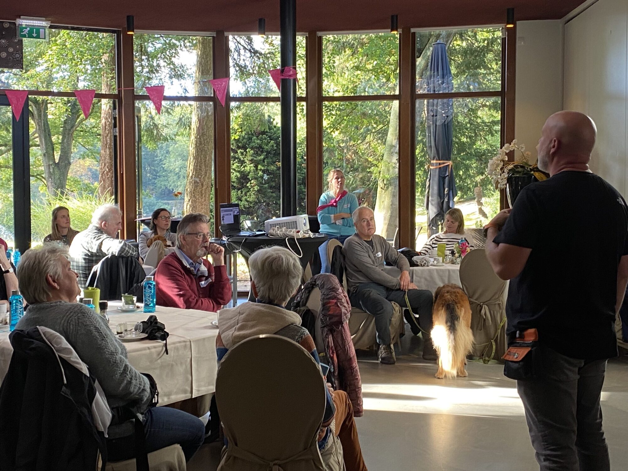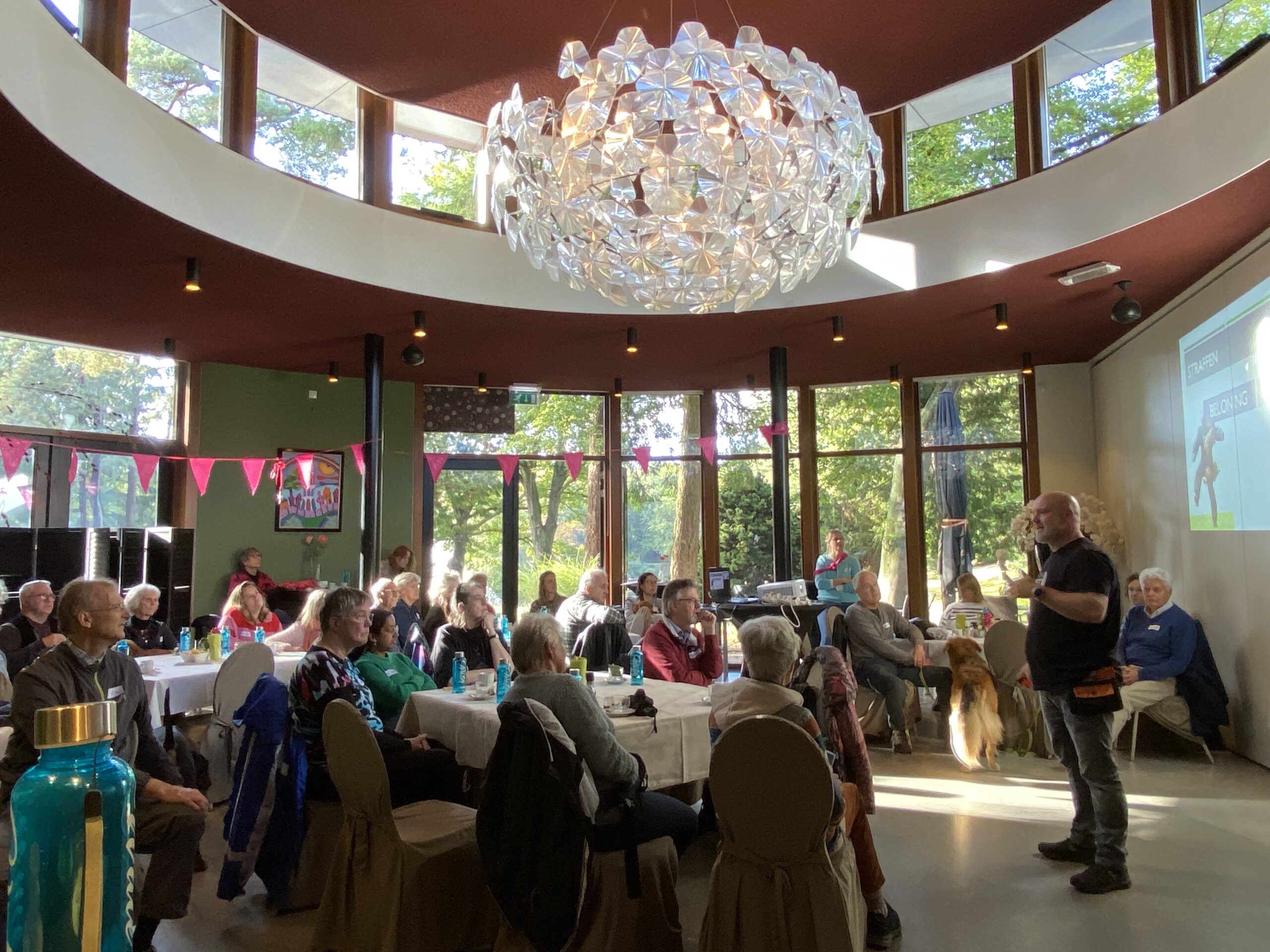 Speciaal voor alle prangende vragen van onze OOPOEH’s en baasjes reisde onze geweldige ambassadeur (en tevens bekendste hondencoach van Nederland) af naar Apeldoorn! Wat een passie, enthousiasme én kennis heeft Jeroen toch! “Wat moet ik doen als…..” “Wat als mijn oppashond….” Geen vraag was hem te gek en hij gaf overal een even kundig als geduldig antwoord op. Jeroen, wat zijn we toch ongelofelijk blij met jou! En wat hebben we weer veel geleerd. Na de succesvolle Vraag maar raak sessie was het tijd om even de benen/pootjes te strekken!
