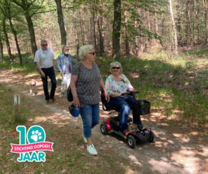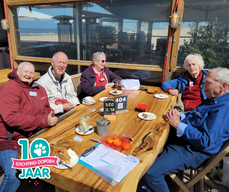 Onze jubileumwandelingen zijn een groot succes! In Breda, Den Haag, Utrecht, Amsterdam en Delft hebben we samen met onze OOPOEH’s en enthousiast kwispelende honden de nodige kilometers over het strand en door het bos achter de rug. We hebben mooie herinneringen opgehaald aan de afgelopen 10 jaar en samen genoten van de vrolijk spelende en plonzende honden om ons heen. En uiteraard eindigden we steevast met koffie met taart, zoals bij een feestje hoort!